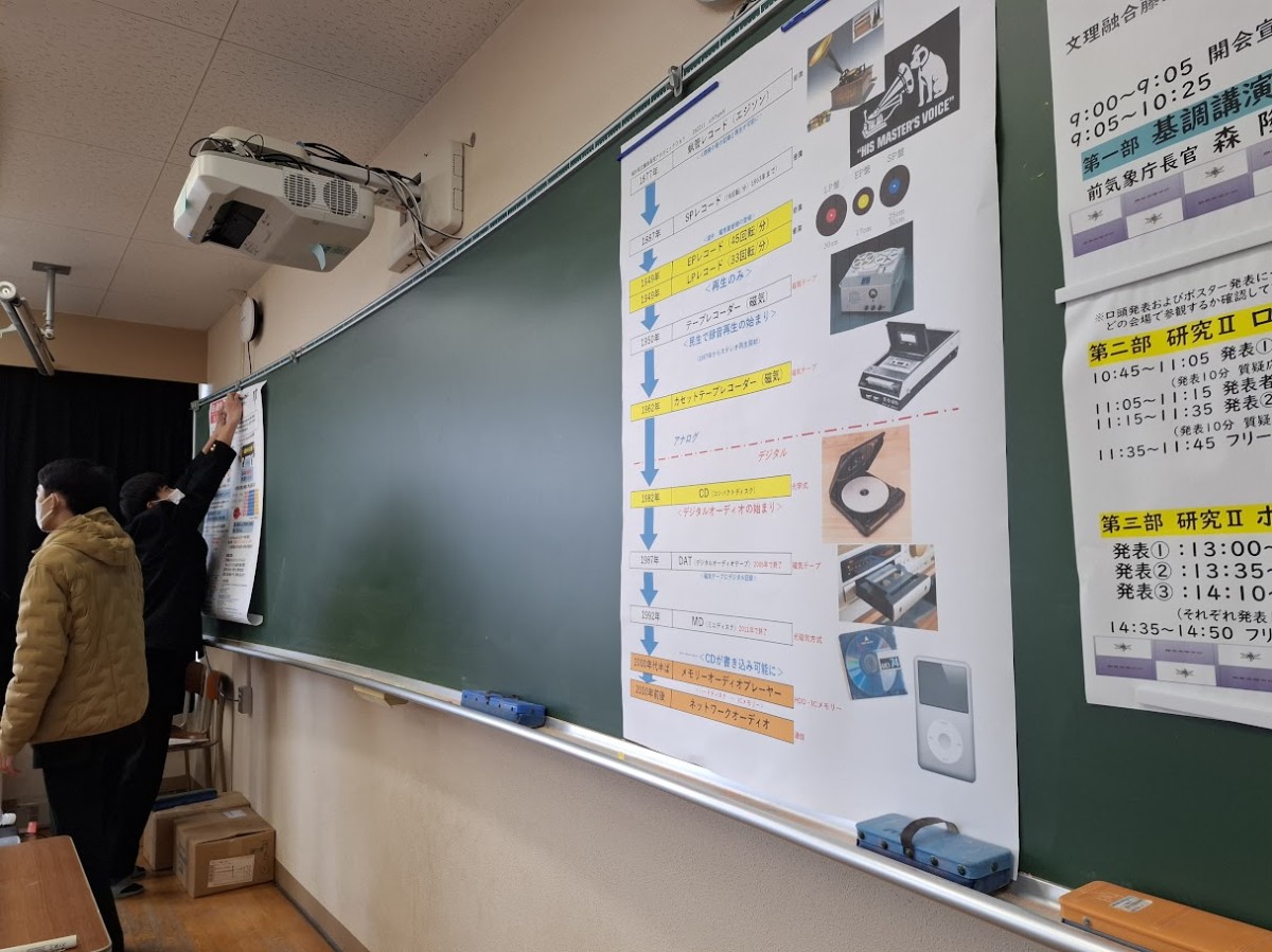 テーマを決め、一枚のポスターを作成して研究成果をプレゼンするプログラムで、生徒さんの発表に交じって、大学や卒業生・企業のプレゼンテーターも一緒にプレゼンです。